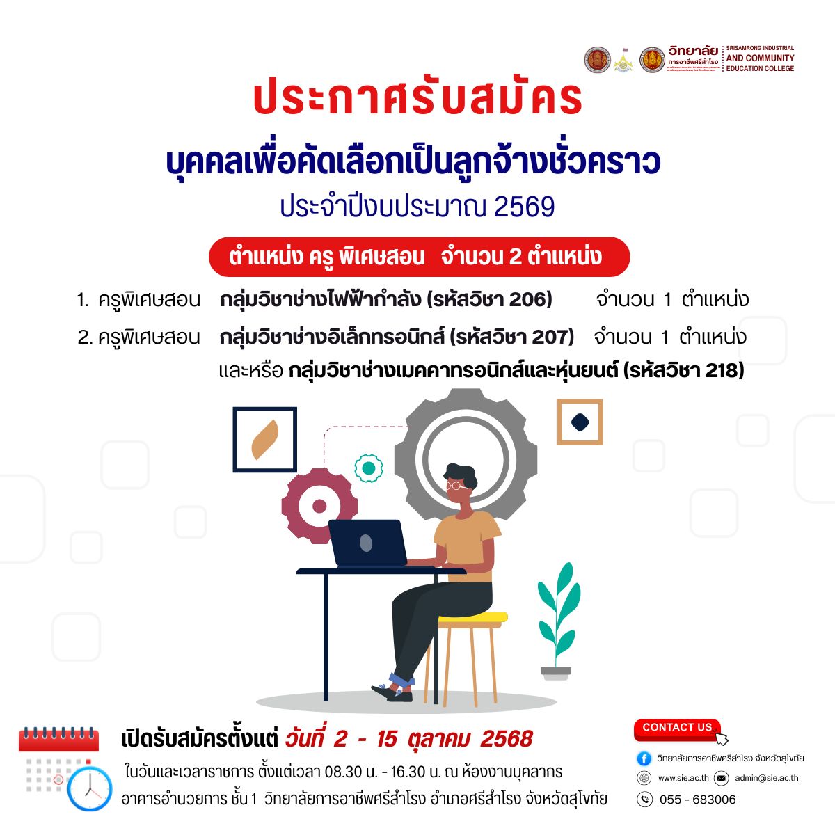 ประกาศรับสมัครบุคคลเพื่อคัดเลือกเป็นลูกจ้างชั่วคราว ตำแหน่งครูพิเศษสอน ประจำปีงบประมาณ 2569
