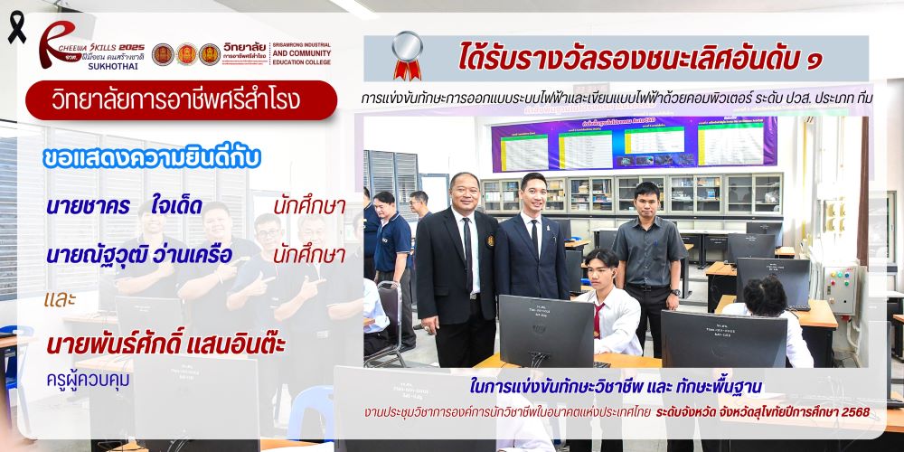ได้รับรางวัลรองชนะเลิศอันดับ ๑ การแข่งขันทักษะการออกแบบระบบไฟฟ้าและเขียนแบบไฟฟ้า