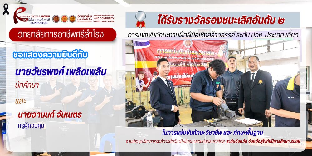 ได้รับรางวัลรองชนะเลิศอันดับ ๒ การแข่งขันทักษะงานฝึกฝีมือเชิงสร้างสรรค์ ระดับ ปวช. ประเภท เดี่ยว