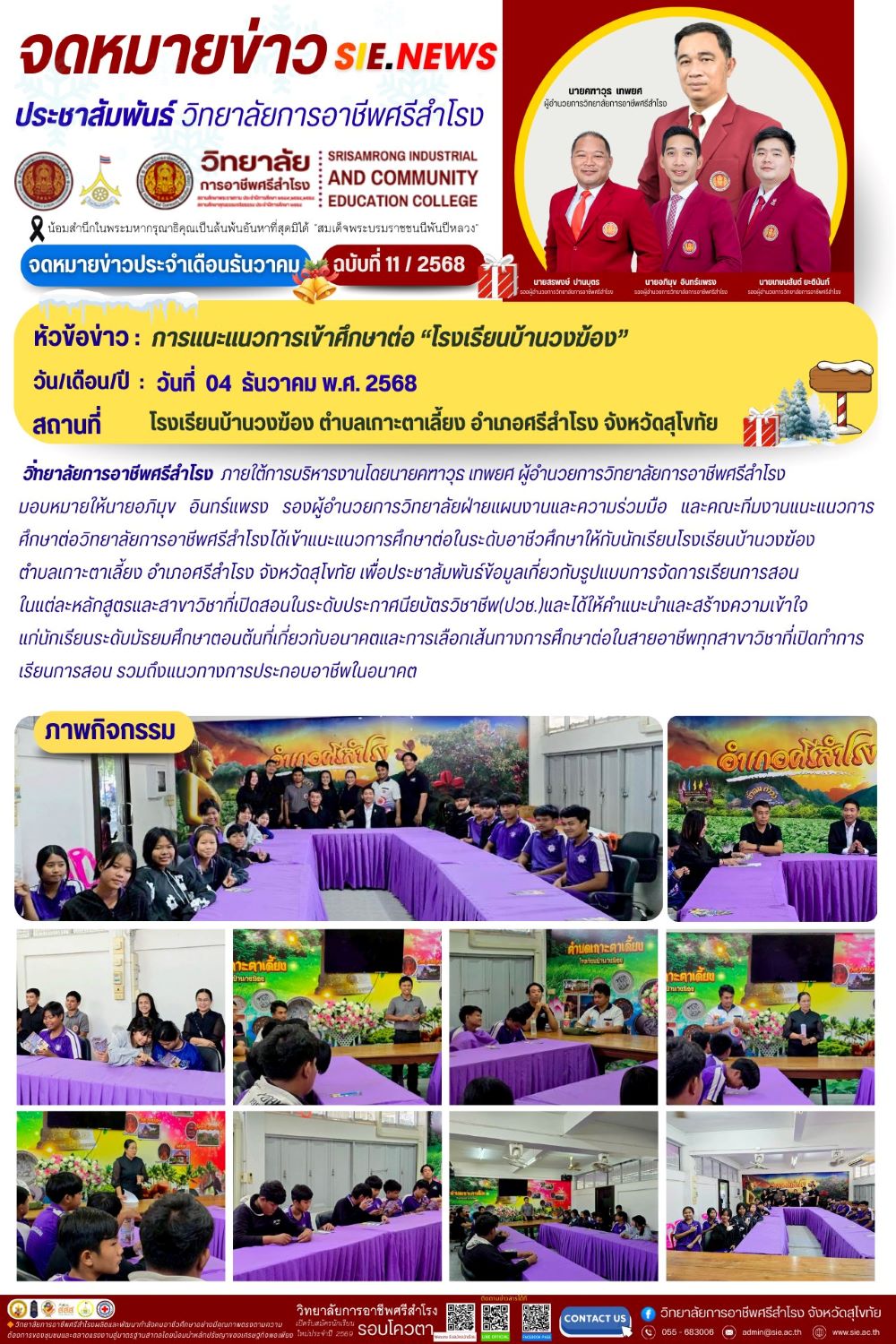 วันที่ 4 ธันวาคม 2568 การแนะแนวการเข้าศึกษาต่อ “ โรงเรียนบ้านวงฆ้อง ”