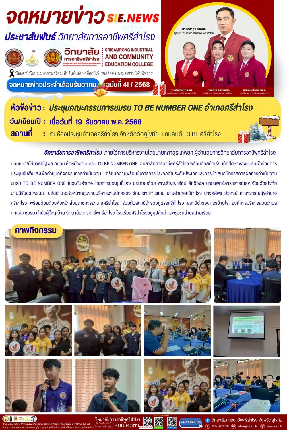 วันที่ 19 ธันวาคม 2568 ประชุมคณะกรรมการชมรม TO BE NUMBER ONE อำเภอศรีสำโรง