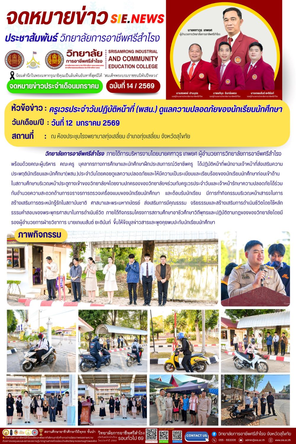 วันที่ 12 มกราคม 2569 ครูเวรประจำวันปฏิบัติหน้าที่ (พสน.) ดูแลความปลอดภัยของนักเรียนนักศึกษา
