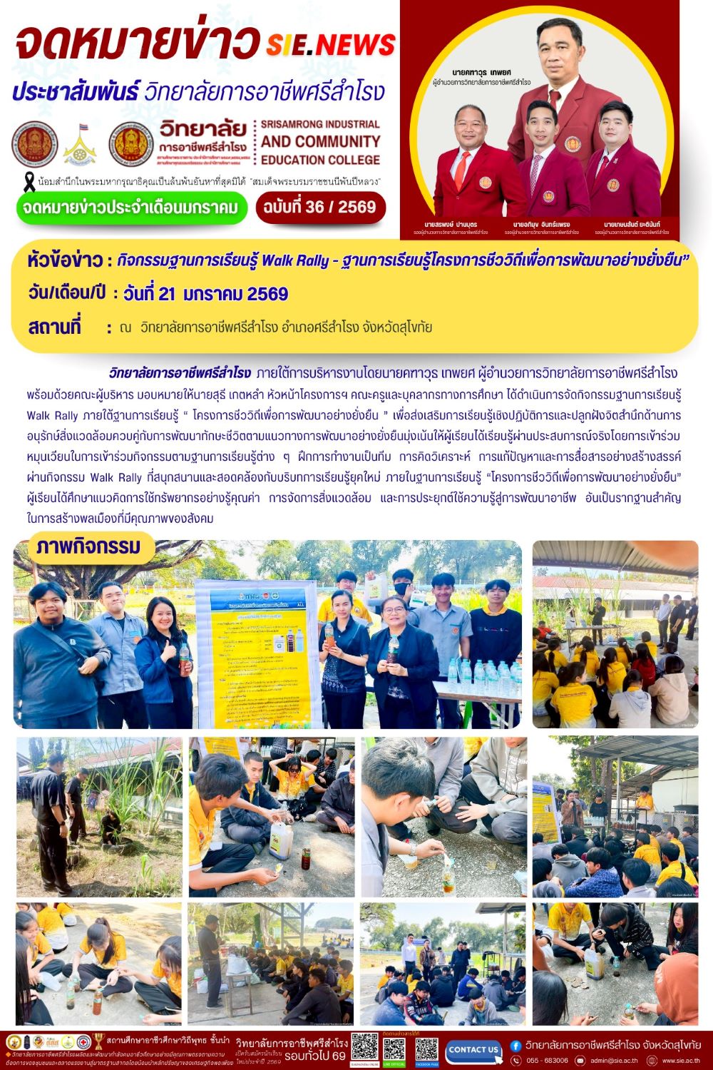 วันที่ 21 ม.ค. 2569 กิจกรรมฐานการเรียนรู้ Walk Rally ฐานการเรียนรู้โครงการชีววิถีเพื่อการพัฒนา