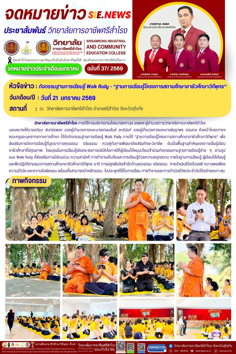 วันที่ 21 มกราคม 2569 กิจกรรมฐานการเรียนรู้ ฐานการเรียนรู้โครงการสถานศึกษาอาชีวศึกษาวิถีพุทธ