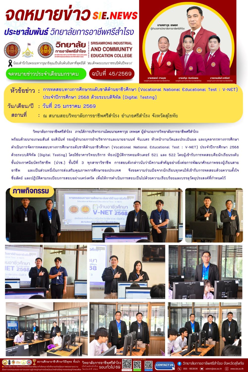 วันที่ 25 มกราคม 2569 DAY-2 การทดสอบทางการศึกษาระดับชาติด้านอาชีวศึกษา (V-NET)