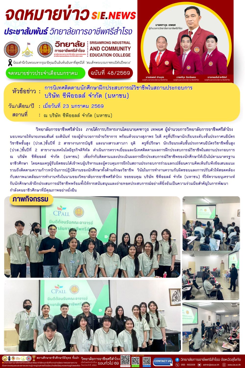 วันที่ 23 มกราคม 2569 การนิเทศติดตามนักศึกษาฝึกประสบการณ์วิชาชีพในสถานประกอบการ
