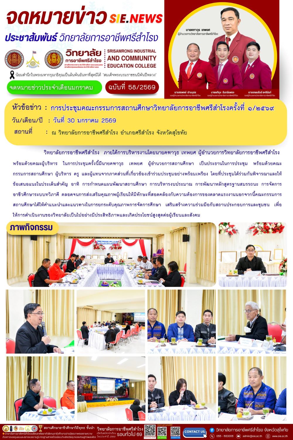วันที่ 30 มกราคม 2569 การประชุมคณะกรรมการสถานศึกษาวิทยาลัยการอาชีพศรีสำโรงครั้งที่ ๑/๒๕๖๙