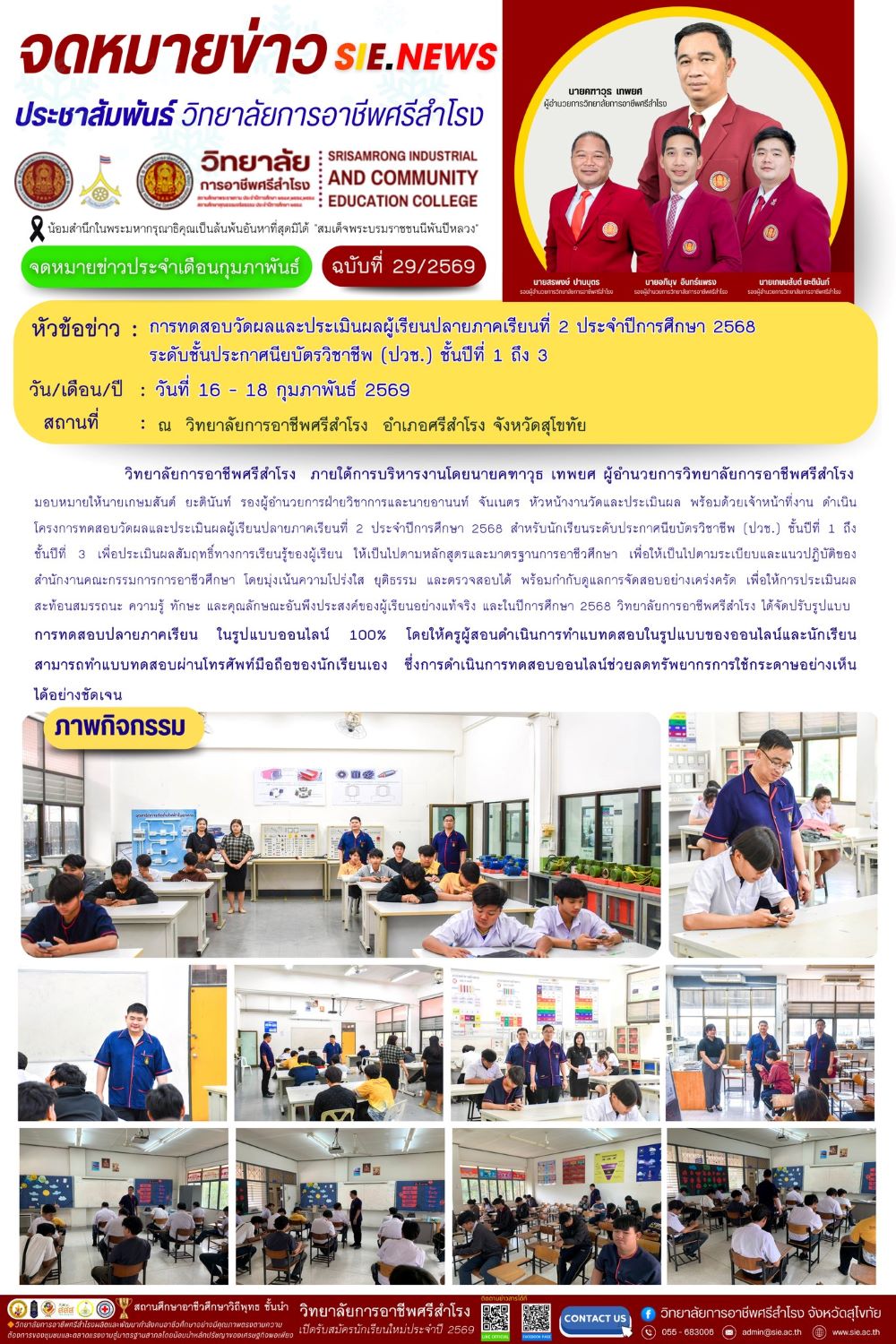 วันที่ 16 - 18 ก.พ. 2569 การทดสอบวัดผลและประเมินผลผู้เรียนปลายภาคเรียนที่ 2 ประจำปีการศึกษา 2568