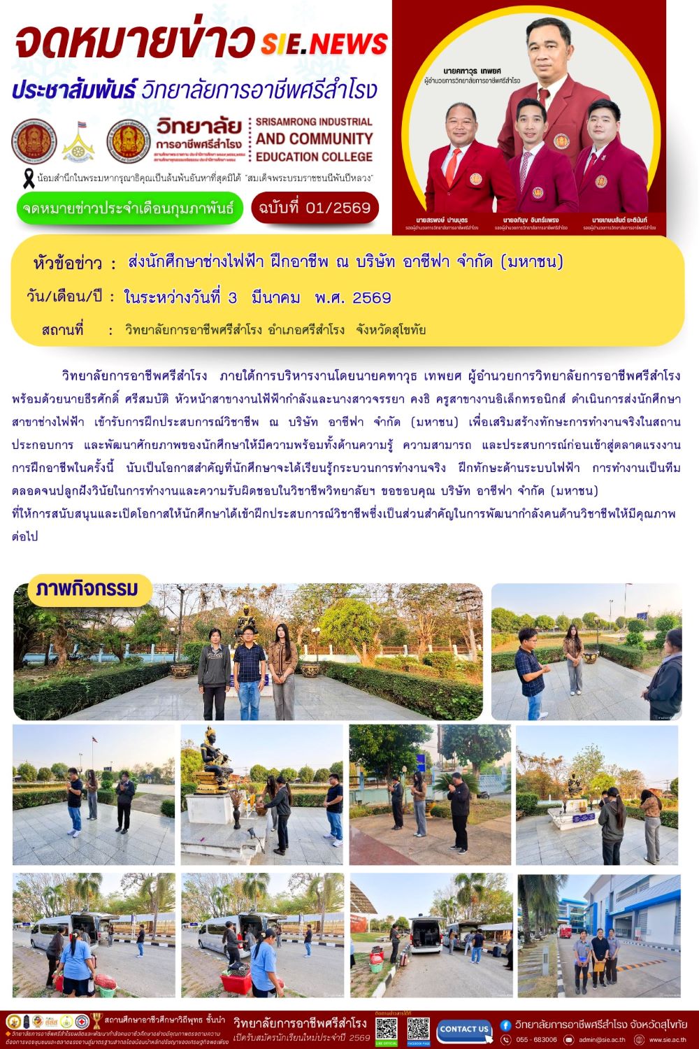 วันที่ 3 มีนาคม 2569 ส่งนักศึกษาช่างไฟฟ้า ฝึกอาชีพ ณ บริษัท อาซีฟา จำกัด (มหาชน)