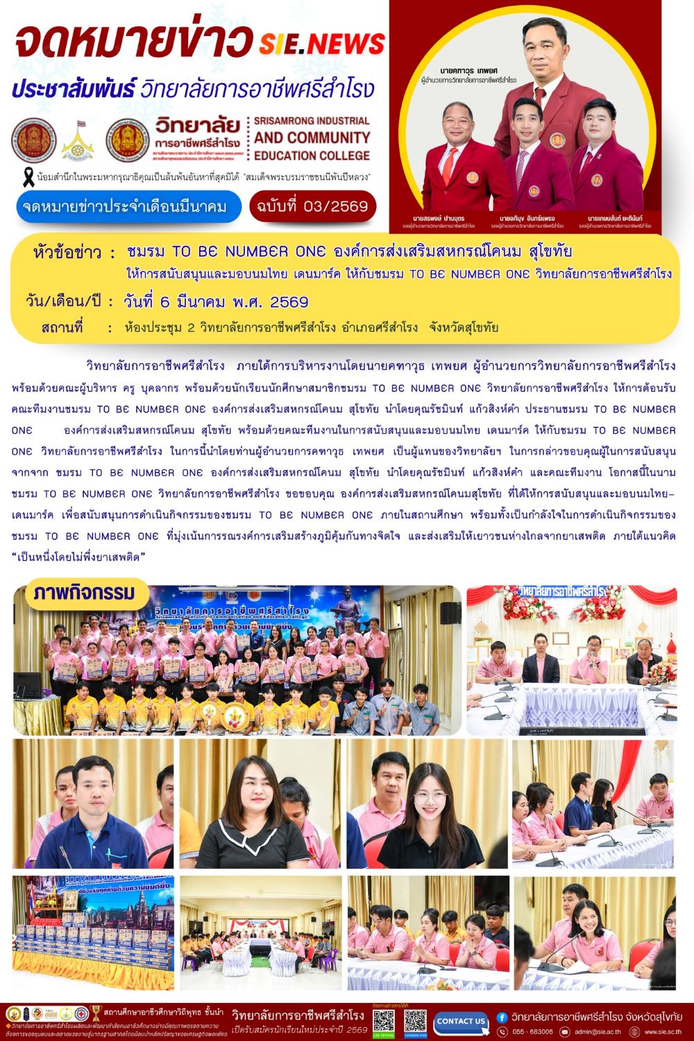 วันที่ 6 มีนาคม 2569 ชมรม TO BE NUMBER ONE องค์การส่งเสริมสหกรณ์โคนม สุโขทัย