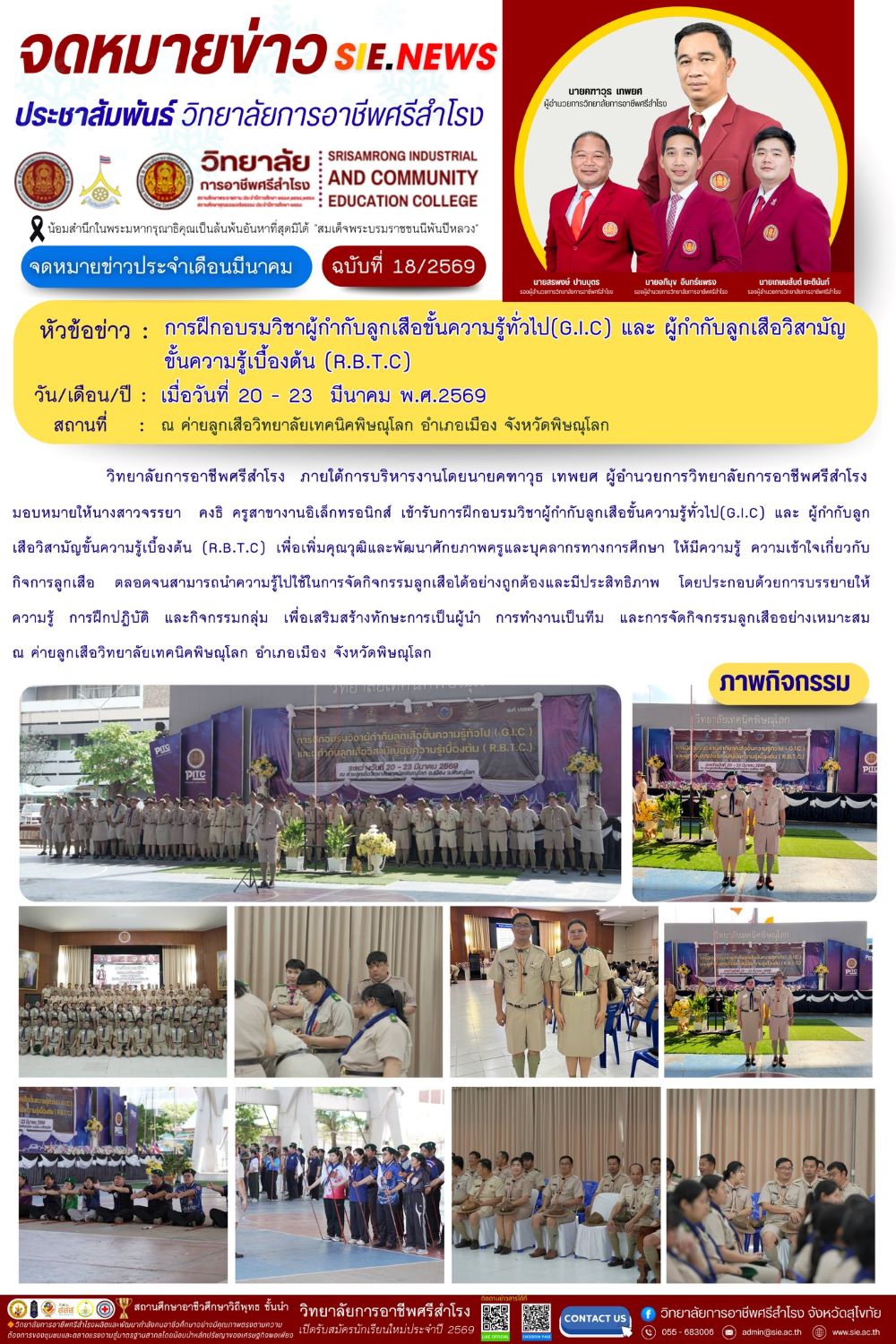 วันที่ 20 - 23 มีนาคม 2569 การฝึกอบรมวิชาผู้กำกับลูกเสือขั้นความรู้ทั่วไป(G.I.C)
