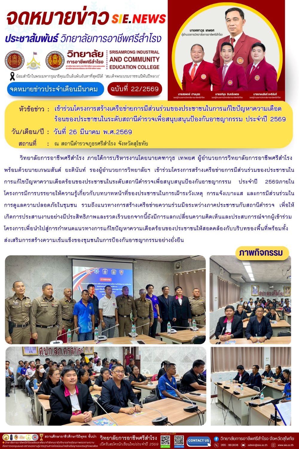 วันที่ 26 มีนาคม 2569 เข้าร่วมโครงการสร้างเครือข่ายการมีส่วนร่วมของประชาชนในการแก้ไขปัญหา