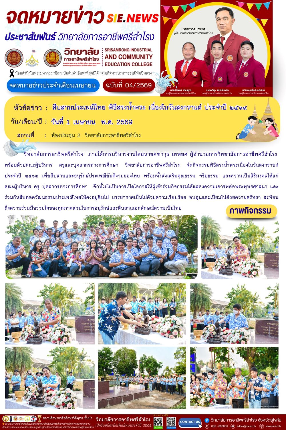 วันที่ 1 เมษายน พ.ศ. 2569 สืบสานประเพณีไทย พิธีสรงน้ำพระ เนื่องในวันสงกรานต์ ประจำปี ๒๕๖๙