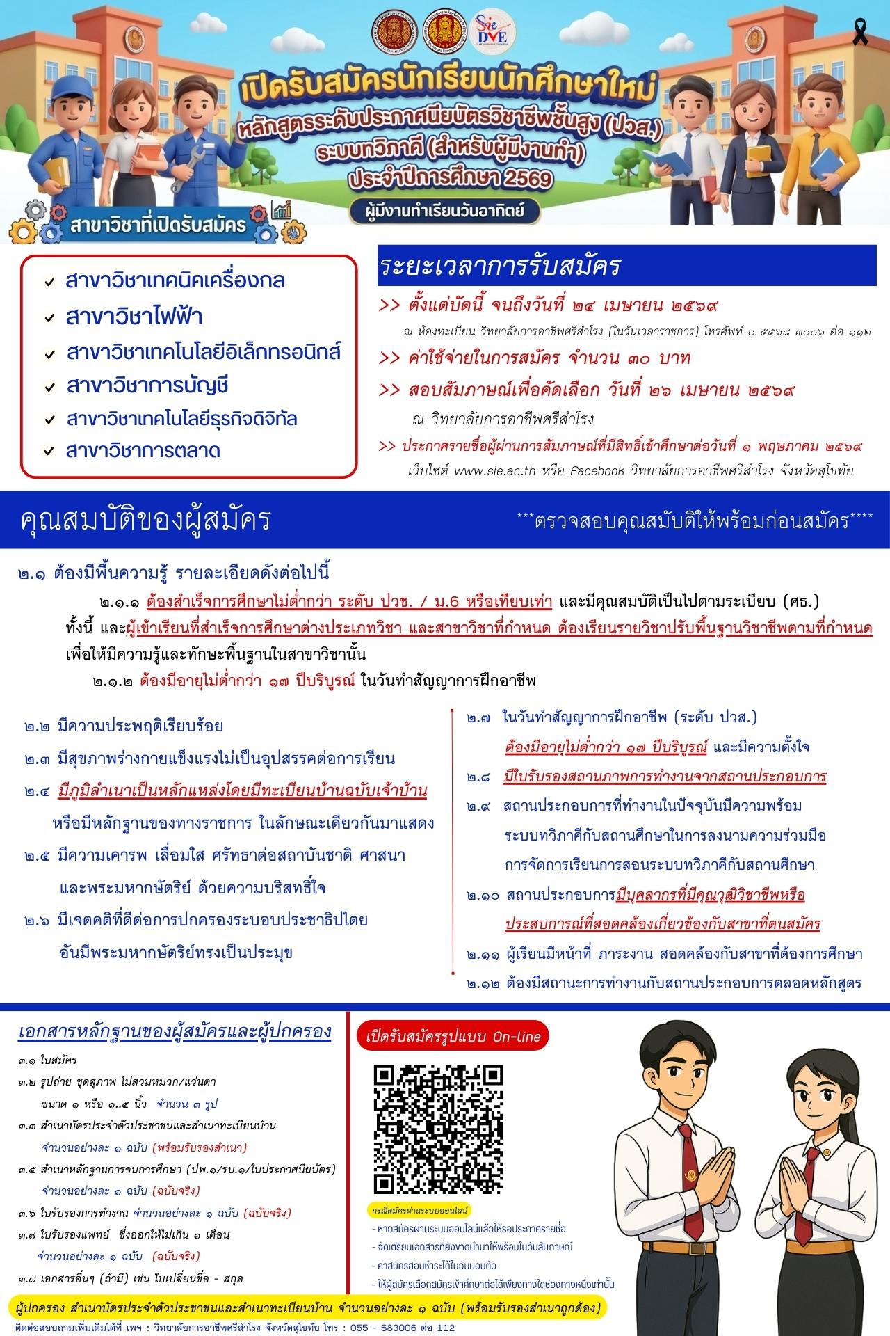 รับสมัครนักศึกษาใหม่ ระบบทวิภาคี (สำหรับผู้มีงานทำ) ประจำปีการศึกษา 2569